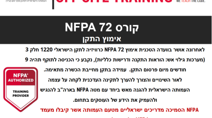 העמותה הישראלית למיגון מפני אש NFPA-IL בשיתוף עם NFPA האמריקאי מתכוונים לקיים בארץ קורס בן חמישה ימים בנושא NFPA 13 – התקנת מערכות מתזים להגנה מפני אש על בסיס מים. מטרת הקורס היא ללמד תכנון והתקנה נכונה ושימוש במערכות מתזים