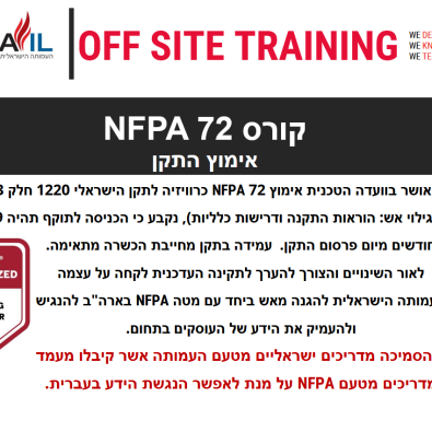 העמותה הישראלית למיגון מפני אש NFPA-IL בשיתוף עם NFPA ארה"ב, שמחים לעדכן על קביעת 2 מועדים לקורס מבוא ל- 101-NFPA: